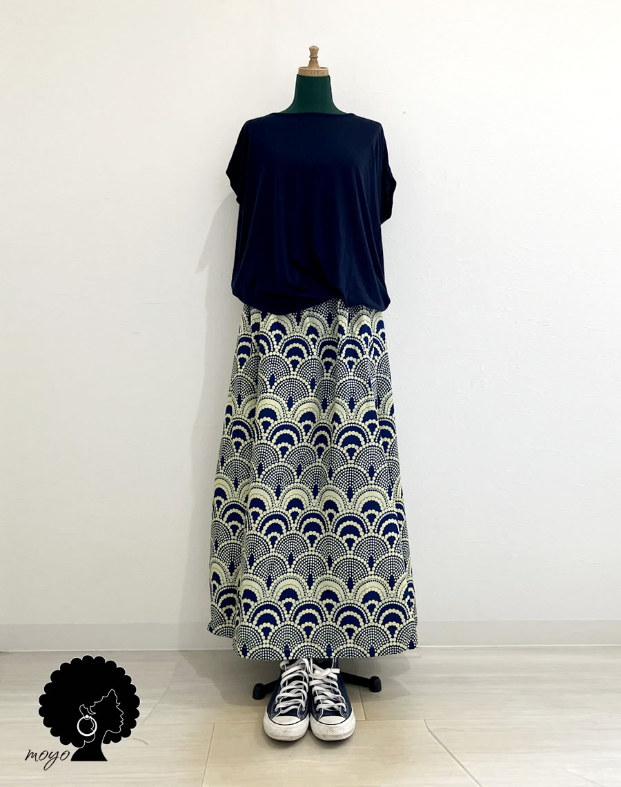 ✼••┈┈┈┈••✼••┈┈┈┈••✼ アフリカンファブリックの華やかスカート✨ シンプルTシャツも